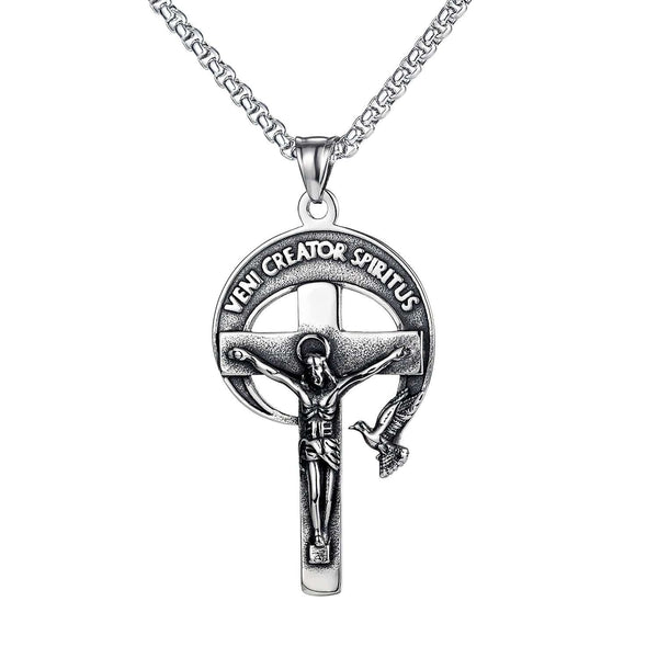 Catholic Veni Creator Spiritus Key Crucifix Cross Necklace