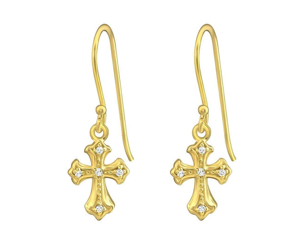 Gold Plated Silver Cross Hanging Earrings