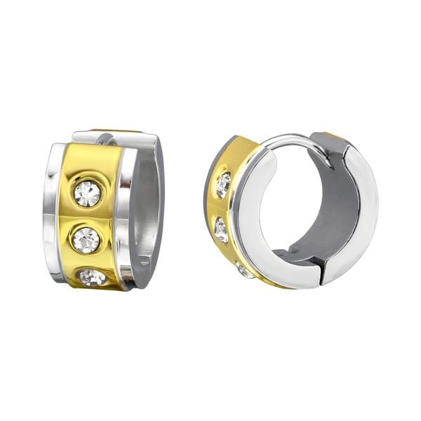 Stainless Steel Gold Plated Huggie Cz Earrings
