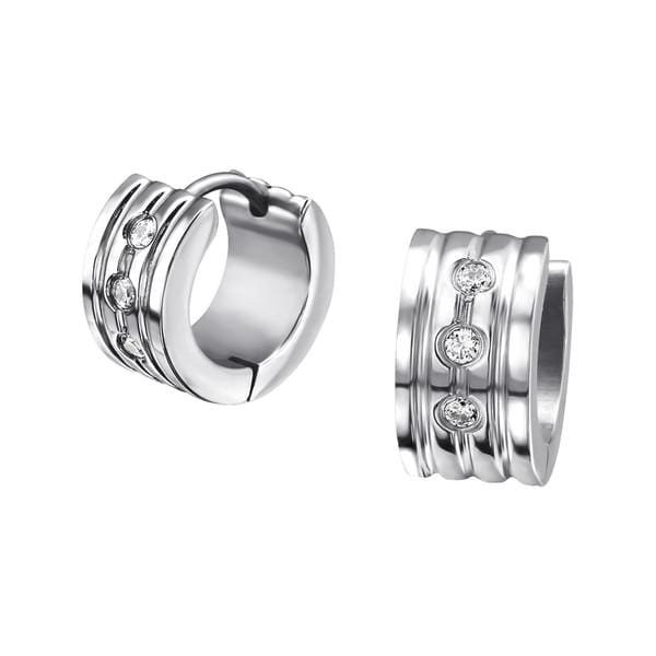 Steel Rose Gold CZ Hoop Huggie Earrings
