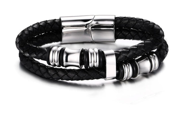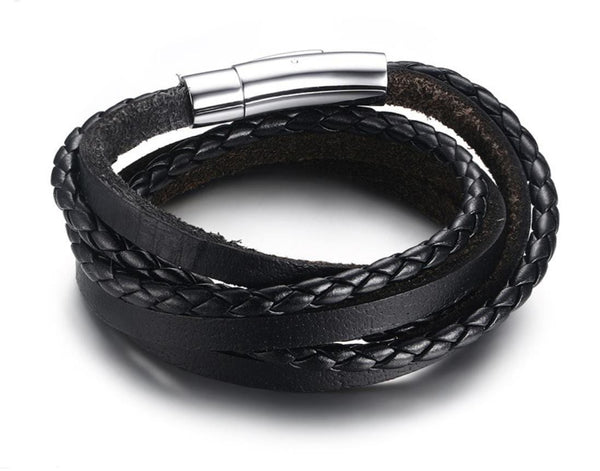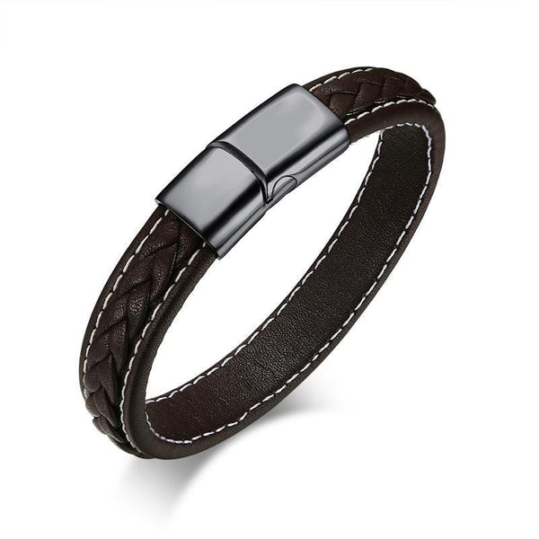 Stainless Steel Magnetic Buckle Leather Bracelet