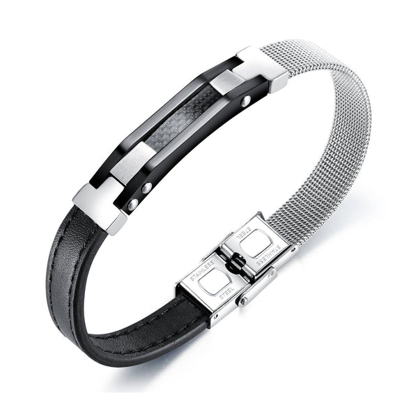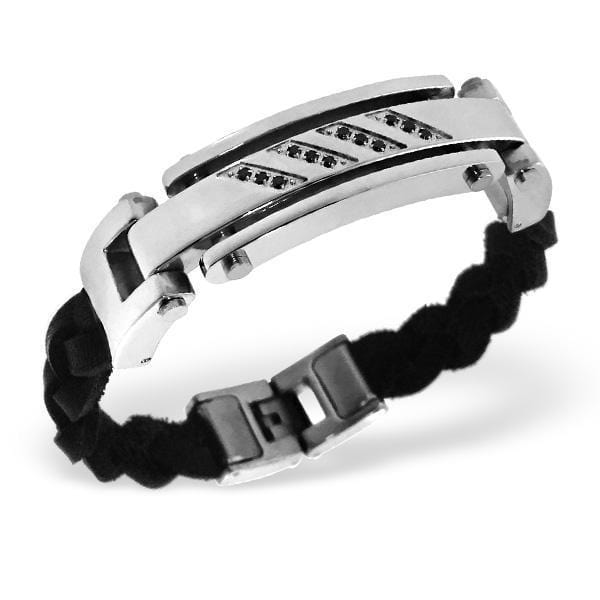 Stainless Steel Magnetic Clasp Leather Bracelet