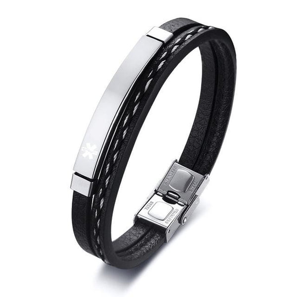 Black Leather Medical Alert ID Bracelets