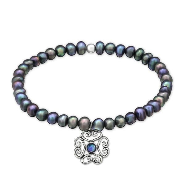 Silver Freshwater Black Pearls Bracelet