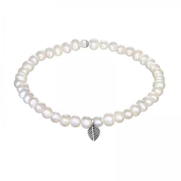 Silver Leaf Fresh Water Pearl Bracelet