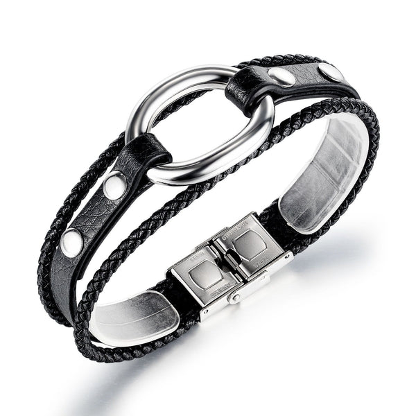 Stainless Steel Leather Bracelet