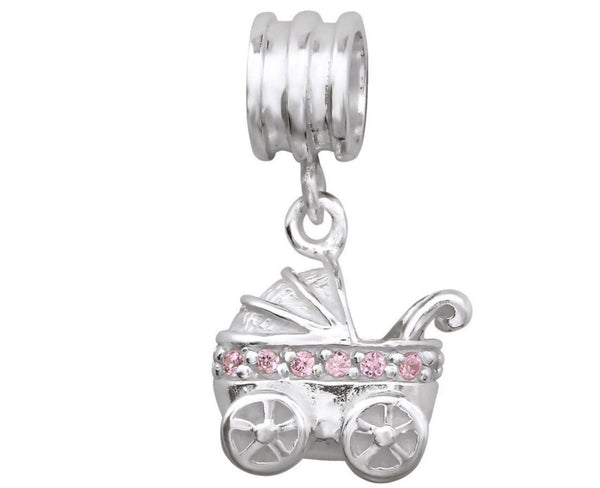 Silver Baby Carriage Charm Bead Silver Baby Carriage Charm Bead. Made of sterling silver with exquisite workmanship. Charm For Bracelets & Necklaces.Material : Sterling Silver