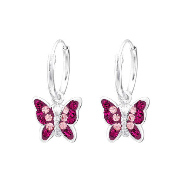 Silver Crystal Butterfly Hanging Hoop earrings for Girls