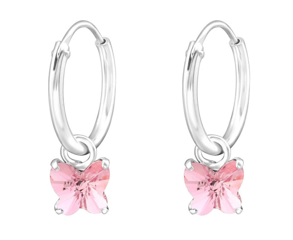 Sterling Silver Hanging Butterfly Crystal Ear Hoop