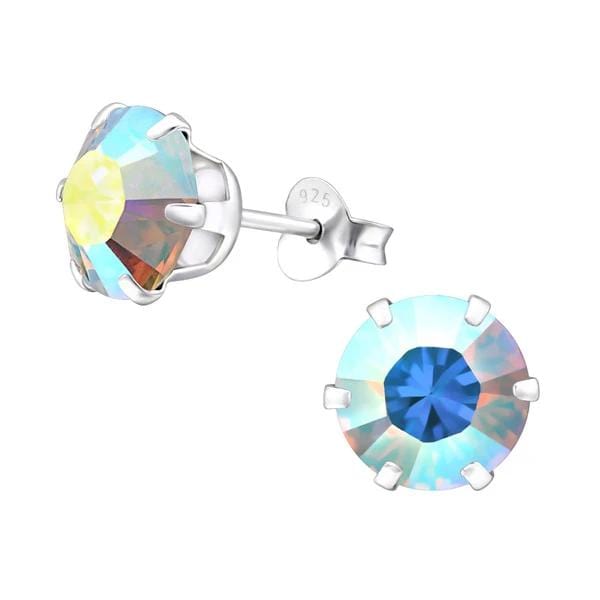 Measurements : 8 mm x 8 mmColors : AB, AquamarineCrystal : Genuine Swarovski Crystal