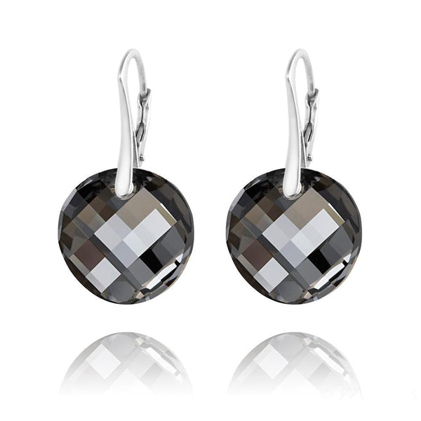 Sterling Silver Crystal Round Earrings Made With Swarovski Crystal Black Diamond