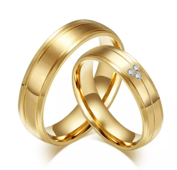 Gold And Crystal couple Wedding Ring These stainless steel wedding bands add a delicate touch of up-to-date elegance to your look, being versatile and glamourous. The high polish finish is...