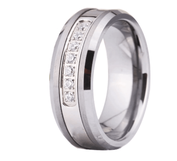 Men's Crystal Wedding & Engagement Ring This unique Tungsten Carbide ring creates a bold and powerful statement, durable alternative to traditional silver, platinum and gold wedding bands that do not last...