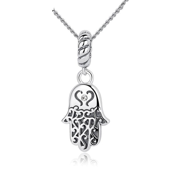 Sterling Silver Lucky Hamsa Pendant Necklace Sterling Silver Lucky Hamsa Pendant Necklace. Representing positivity, abundance, and faith this Hamsa charm necklace makes the perfect fashion accessory whilst also fighting against...