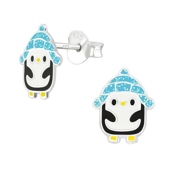 Kids Silver Penguin Stud Earrings with Crystal and Epoxy