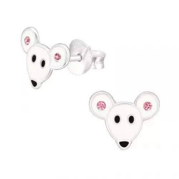 Kids Silver Mouse Stud Earrings with Crystal and Epoxy