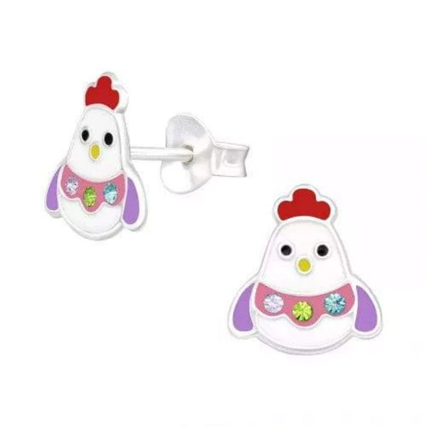 Kids Silver Chick Stud Earrings Metal : Sterling Silver Measurement : Size : 8 mm x 9 mm Crystal Stones :6 Colors : multicolor, White, Black, Yellow, Pink, Purple, Red...