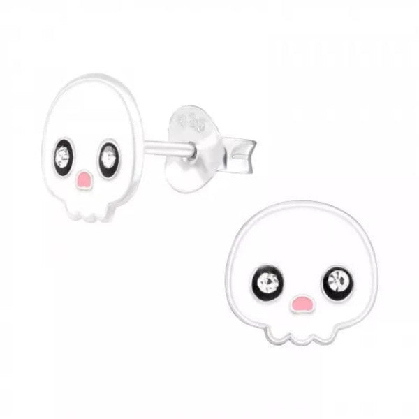 Kids Silver Ghost Stud Earrings Metal : Sterling Silver Measurement : Size : 8 mm x 8 mm Crystal Stones : 4 Color : White, Black, Pink Features : Kids Silver Ghost...