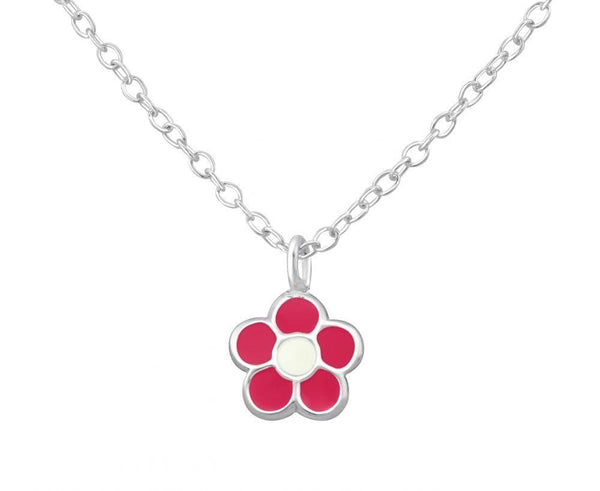 This cute necklace features a pink and white flower charm with a sterling silver chain. This necklace is a cute accessory that is sure to go with any fashionable kids...