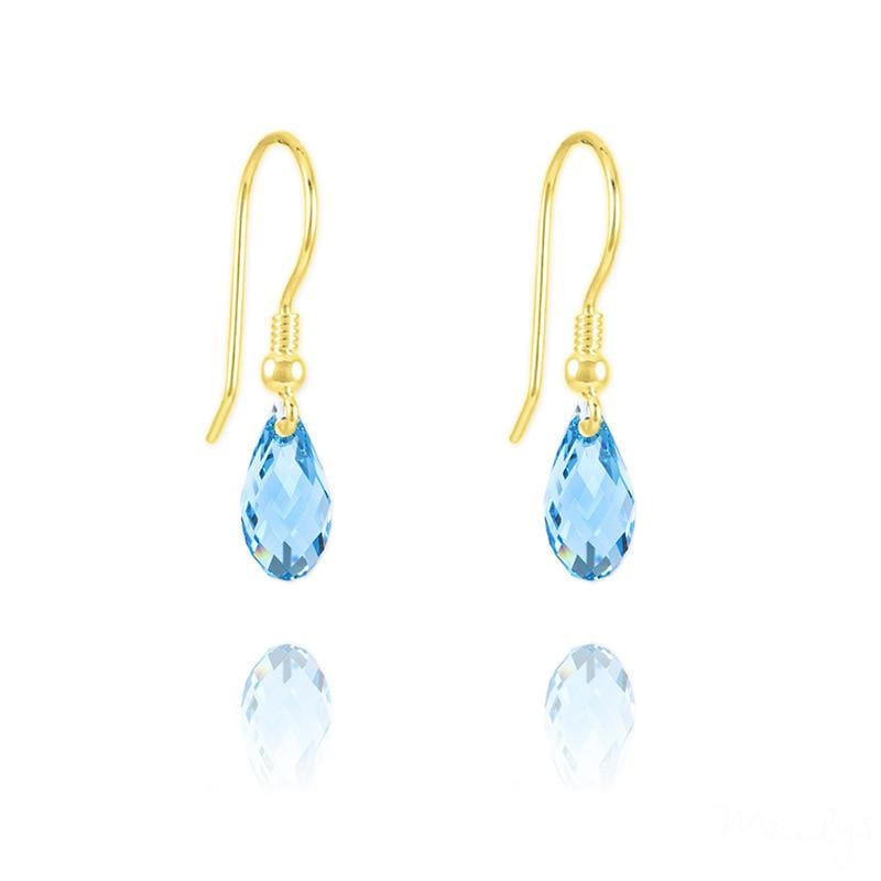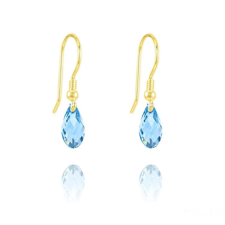 24K Gold Aquamarine Swarovski Crystal Teardrop Earrings