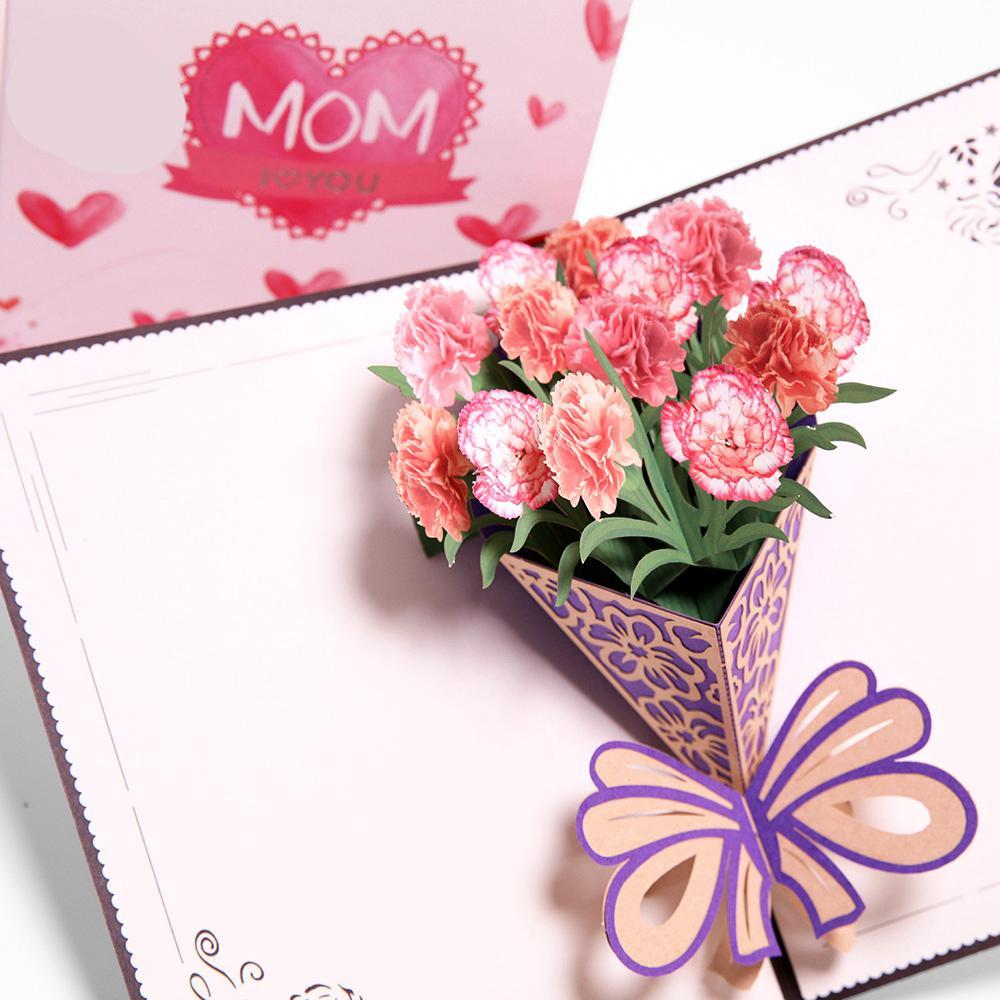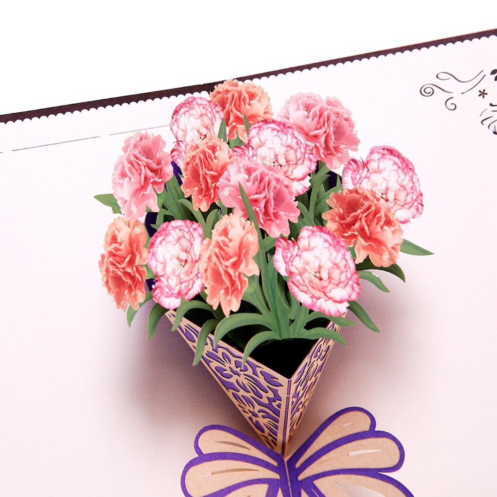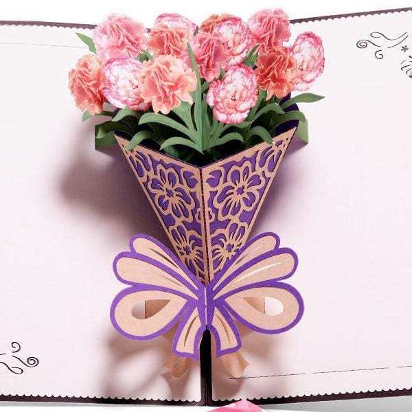Laser Cut 3D Pop Up Flower Bouquet Mom Card. Unique handmade greeting card perfect for Mother day or for any Occasion