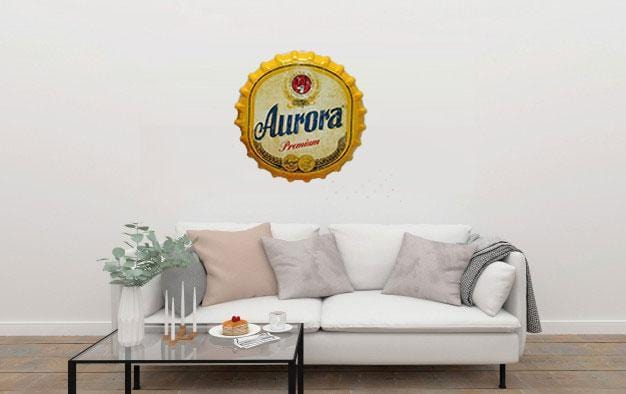 Aurora Beer Cap Metal Tin Sign Poster will adorn the look and feel of your wall. This versatile and durable tin sign, metal wall poster can be stuck in any corner of your room, office, shop, shed, garage or store and it will look just as great. Imported Iron. Fashion & Retro Quality Tinned Skin. Four pre-drilled holes for hanging or you may use double-sided tape.