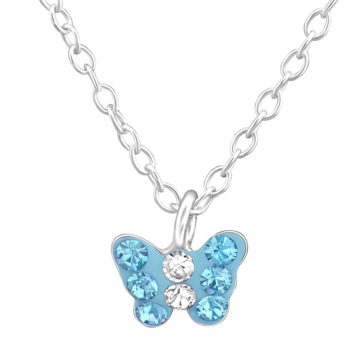 Children's Silver Butterfly Necklace Made with Swarovski Crystal is sure to be the finishing touch to any outfit. Exquisitely crafted in sterling silver and will give your designs an elegant appearance.Crystal: Swarovski Crystal: Genuine CrystalSterling Silver Jewellery made with Genuine Swarovski Crystals.