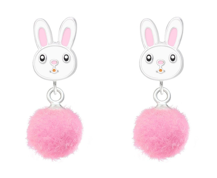 Children's Silver Rabbit Pom Pom Stud Earrings