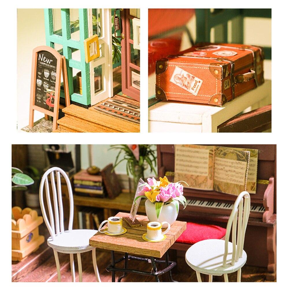 Coffee Bar woodden Doll House with Furniture. This selection of unique tin dollhouses are the perfect way to keep the kids entertained. Their portable nature and intricate designs are sure to keep the kids occupied for hours on end. The dollhouse has been expertly crafted using a combination of wood, fabric, paper, resin, plastic, and metal.