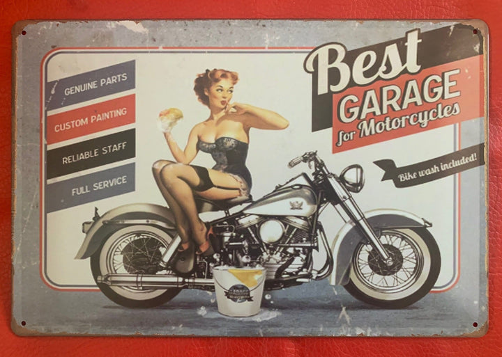 Best Garage Metal Tin Sign Poster - Wall metal tin poster will adorn the look and feel of your room's wall. The wall poster has dimensions of 20 x 30 cm and can be stuck in any corner of your room and it will look just as great.