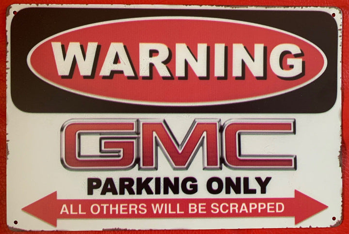 GMC Parking Only Metal Tin Sign poster - Wall metal tin poster will adorn the look and feel of your wall. The wall poster has dimensions of 20 x 30 cm and can be stuck in any corner of your room and it will look just as great.