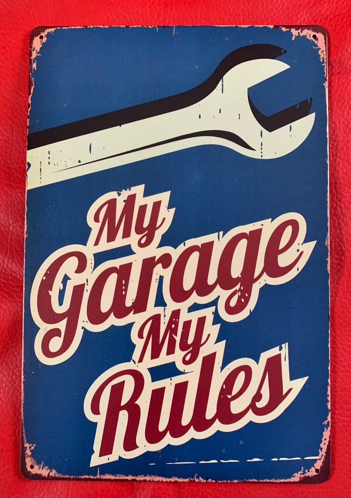 My Garage My Rules Metal Tin Sign Poster - Wall metal tin poster will adorn the look and feel of your wall. The wall poster has dimensions of 20 x 30 cm and can be stuck in any corner of your room and it will look just as great.