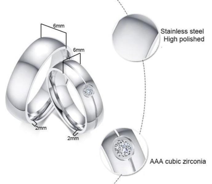 Tasteful and sophisticated, this set of silver wedding bands make a beautiful reminder of a love well shared. The rings are crafted from stainless steel and feature lined detailing, inlaid crystals and a high polish silver finish.