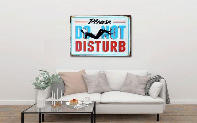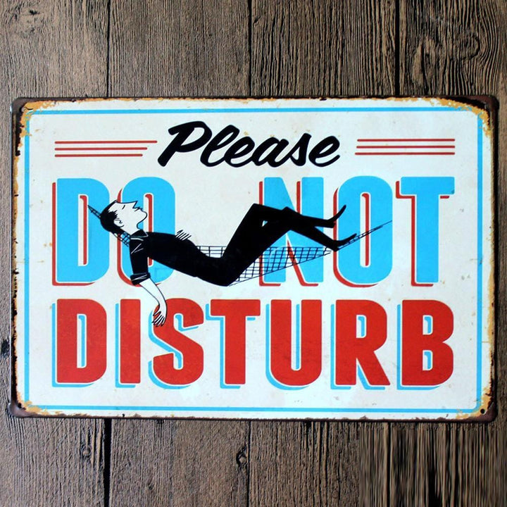 Do Not Disturb Sign - Metal Tin Poster will adorn the look and feel of your room's wall. The wall poster has dimensions of 20 x 30 cm and can be stuck in any corner of your room and it will look just as great.