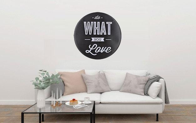 Do What You Love Round Metal Tin Sign Poster will adorn the look and feel of your wall. This versatile and durable tin sign, metal wall poster can be stuck in any corner of your room, office, shop, shed, garage or store and it will look just as great. Imported Iron. Fashion & Retro Quality Tinned Skin. Four pre-drilled holes for hanging or you may use double-sided tape.