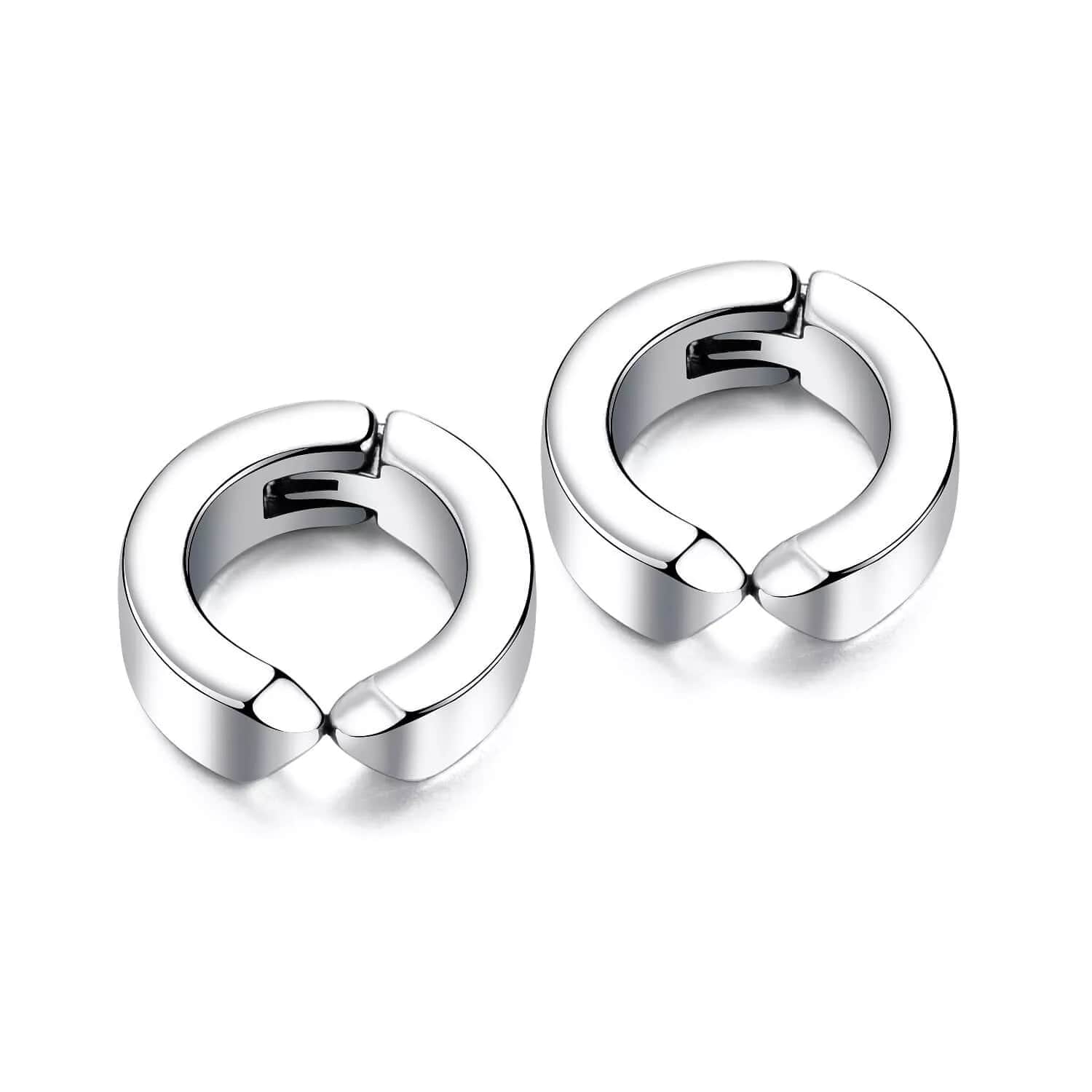 Non-Pierced Earrings for Men. Fake Hoop Earrings Stainless Steel Clip On Huggie Earrings for Men.