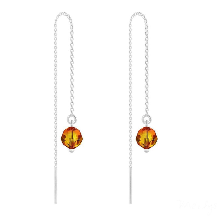 Fire Opal Swarovski Crystal Silver Chain Earrings