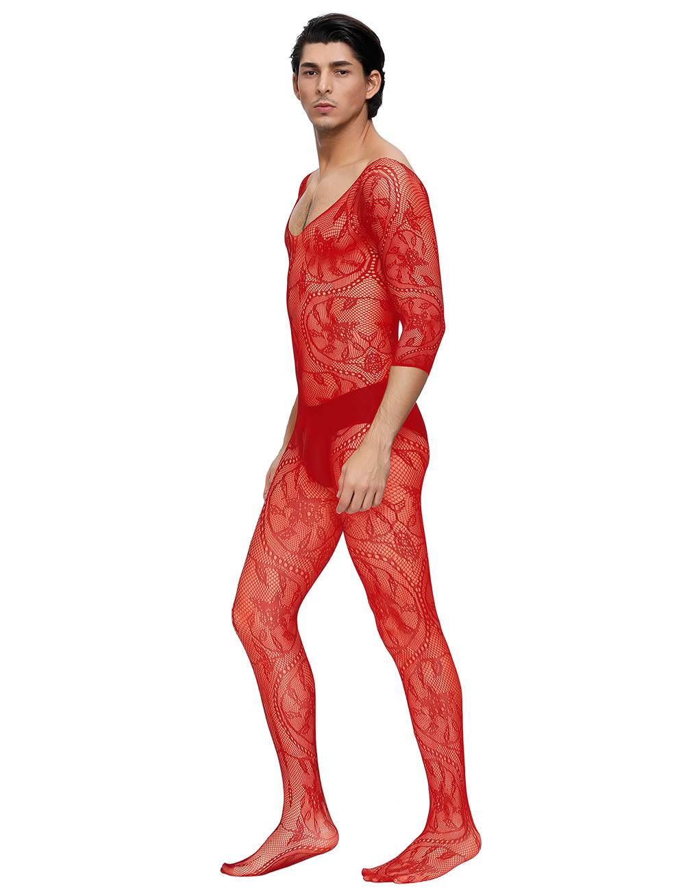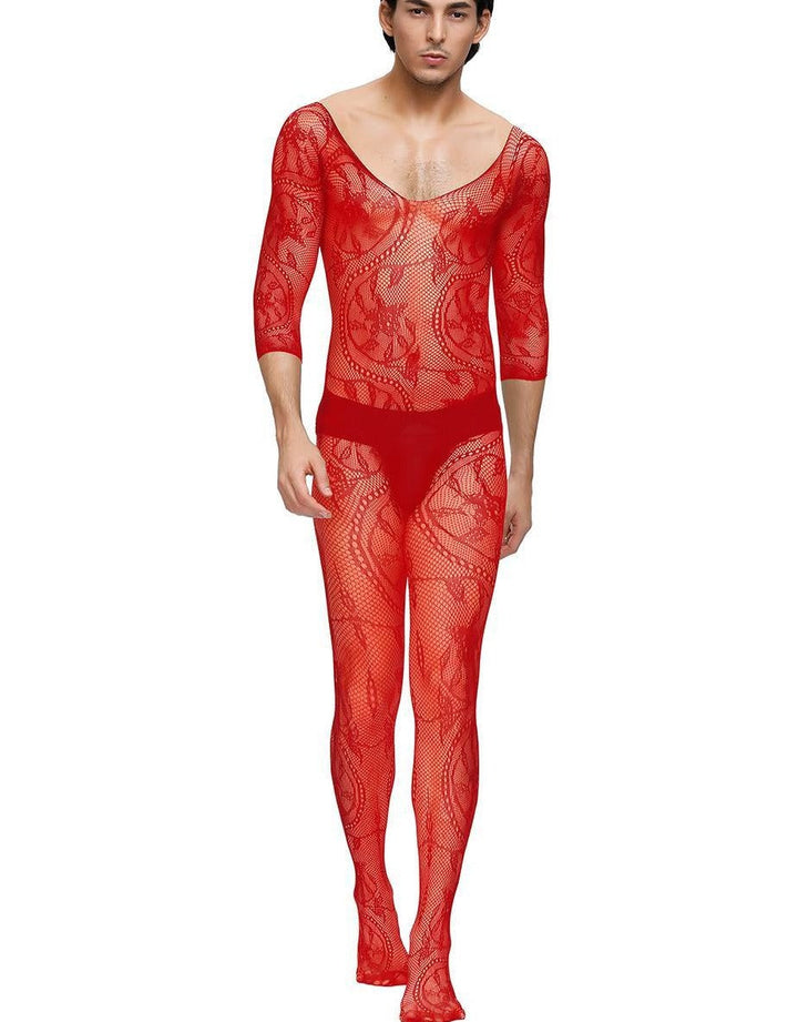 Floral Crotchless Red Bodystockings For Men