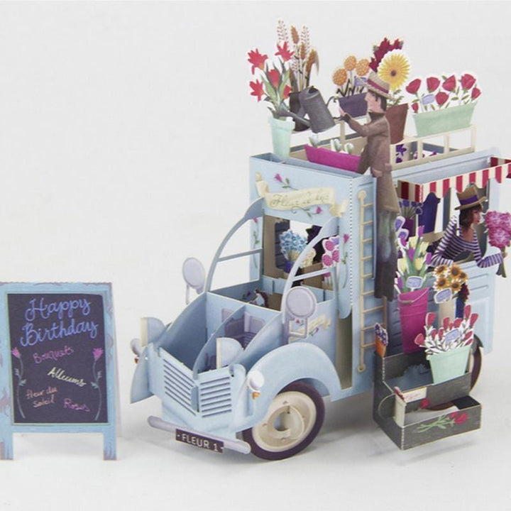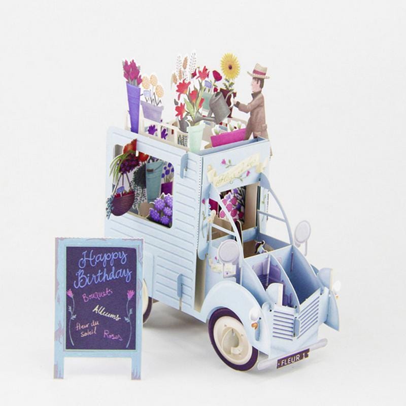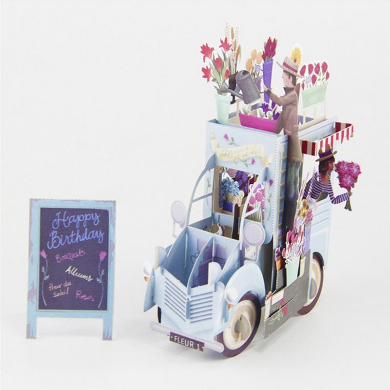 Flower Couple, Birthday Jeep - 3d Popup Birthday Greeting Card