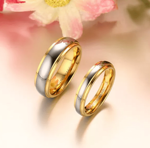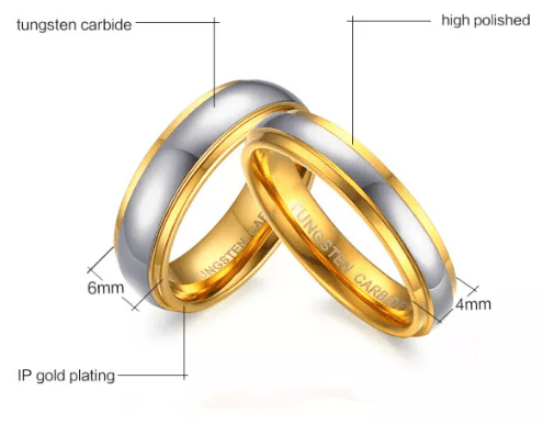Gold Wedding Band Tungsten Ring