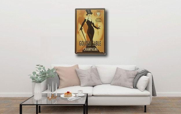 Golden Sable Champagne Poster - Wall Metal Tin Poster will adorn the look and feel of your wall. The wall poster has dimensions of 20 x 30 cm and can be stuck in any corner of your room and it will look just as great.