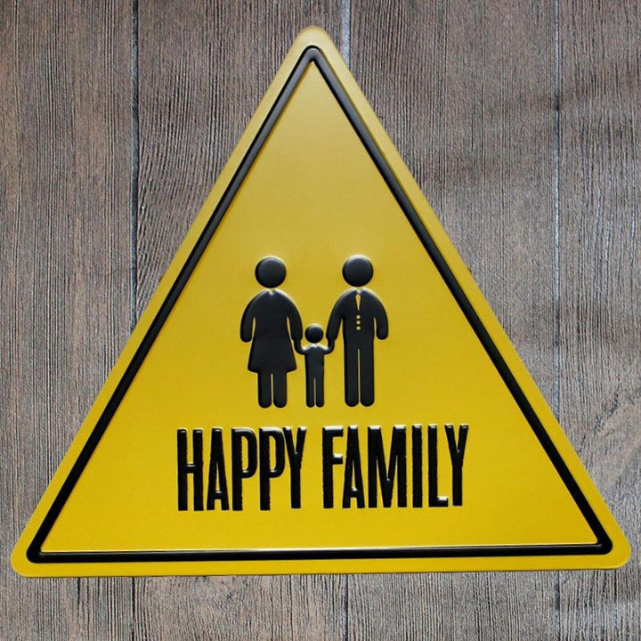 Happy Family Triangle Metal Tin Sign Poster will adorn the look and feel of your wall. This versatile and durable tin sign, metal wall poster can be stuck in any corner of your room, office, shop, shed, garage or store and it will look just as great. Imported Iron. Fashion & Retro Quality Tinned Skin. Four pre-drilled holes for hanging or you may use double-sided tape.