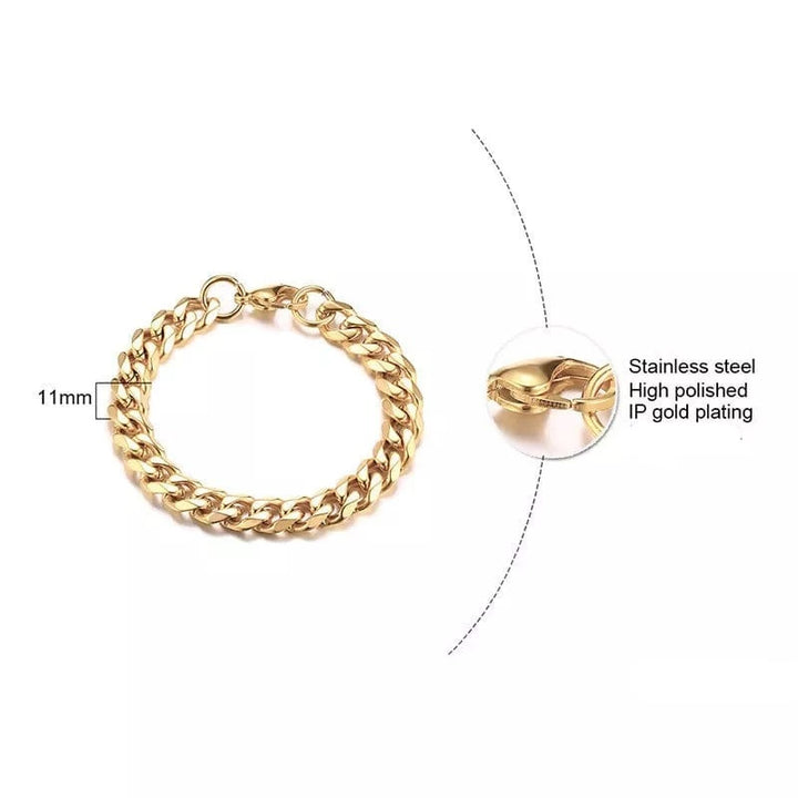 Heavy Cuban Link Gold Chain Bracelet-11mm