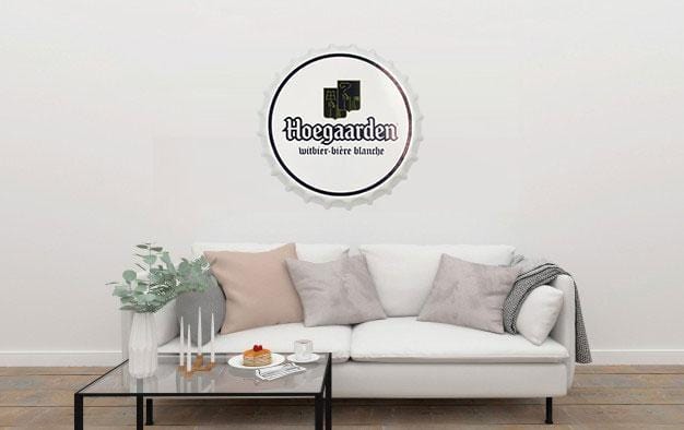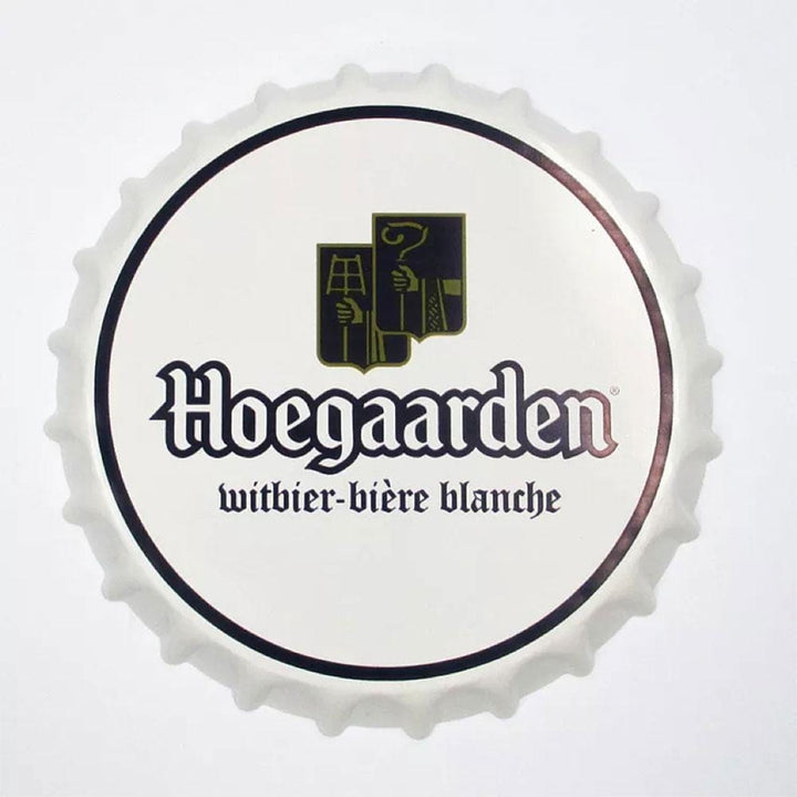 Hoegaarden Beer Cap Metal Tin Sign Poster will adorn the look and feel of your wall. This versatile and durable tin sign, metal wall poster can be stuck in any corner of your room, office, shop, shed, garage or store and it will look just as great. Imported Iron. Fashion & Retro Quality Tinned Skin. Four pre-drilled holes for hanging or you may use double-sided tape.