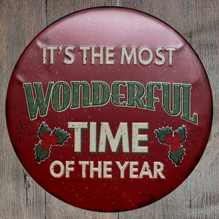 Its The Most Wonderful Time Round Metal Tin Sign Poster will adorn the look and feel of your wall. This versatile and durable tin sign, metal wall poster can be stuck in any corner of your room, office, shop, shed, garage or store and it will look just as great. Imported Iron. Fashion & Retro Quality Tinned Skin. Four pre-drilled holes for hanging or you may use double-sided tape.