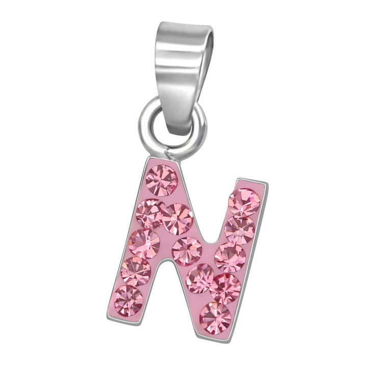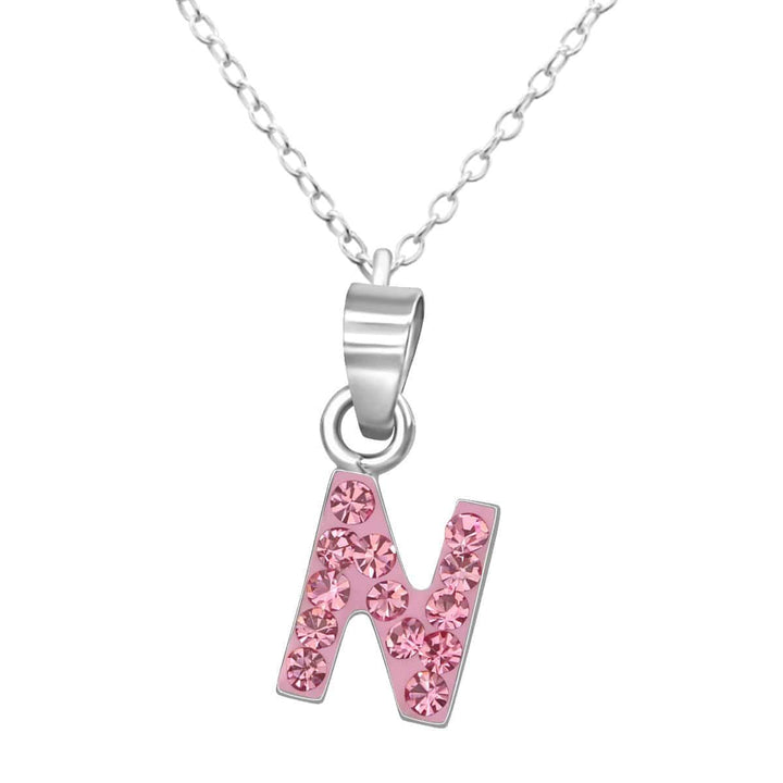 Kids Pink letter N Necklace Pendant with Silver Chain - a must buy! - Make Vana's High-quality sterling silver jewellery at realistic prices.