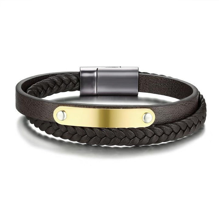 Leather Stainless Steel Gold Engravable Bracelets Comes with an elegantly designed and sturdy gift box that is ideal for storing and presenting jewellery.