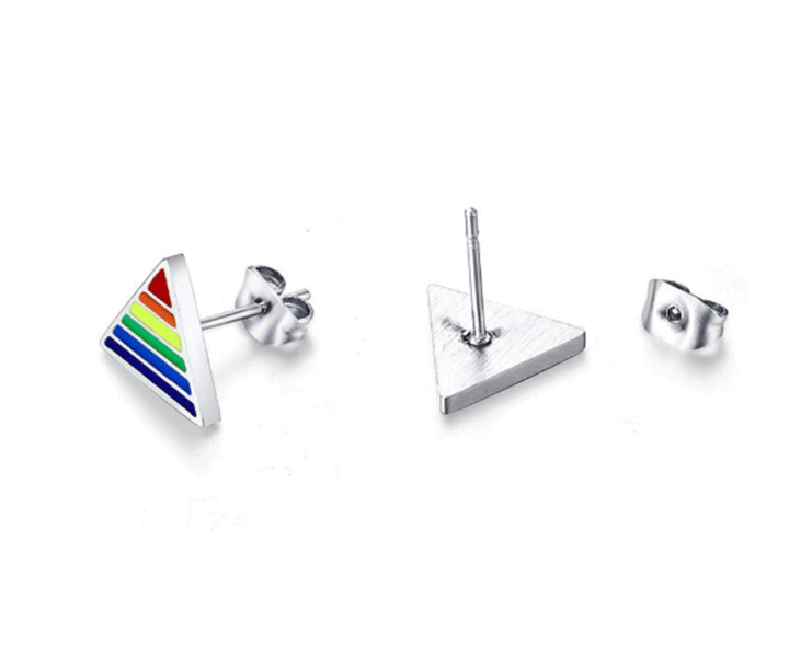 LGBT Pride Steel Triangle Rainbow Stud Earrings