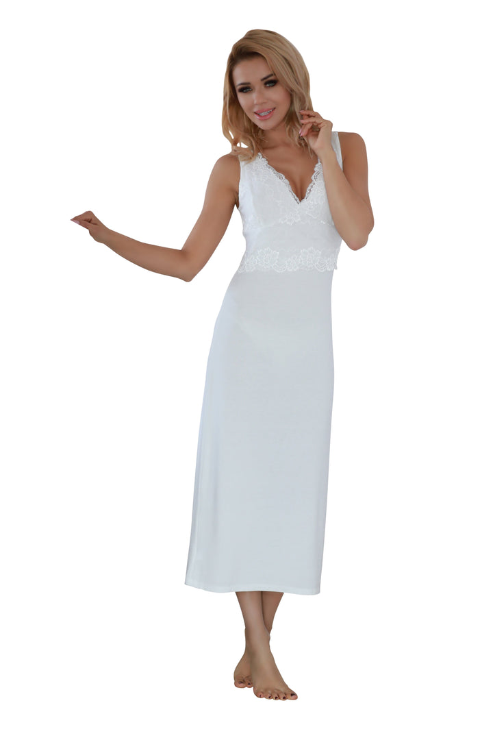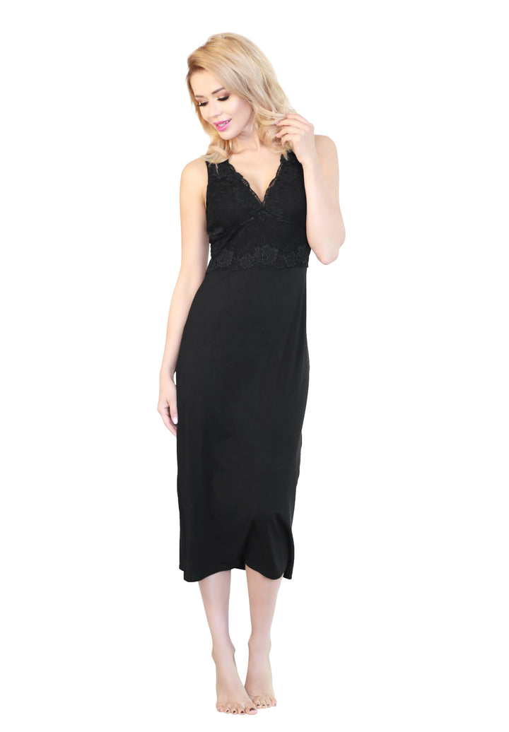 The soft viscose was supplemented with a lace bra, which merges fluently into straps. It is an inimitable night piece of a wardrobe also for the lovers of longer undergarments.