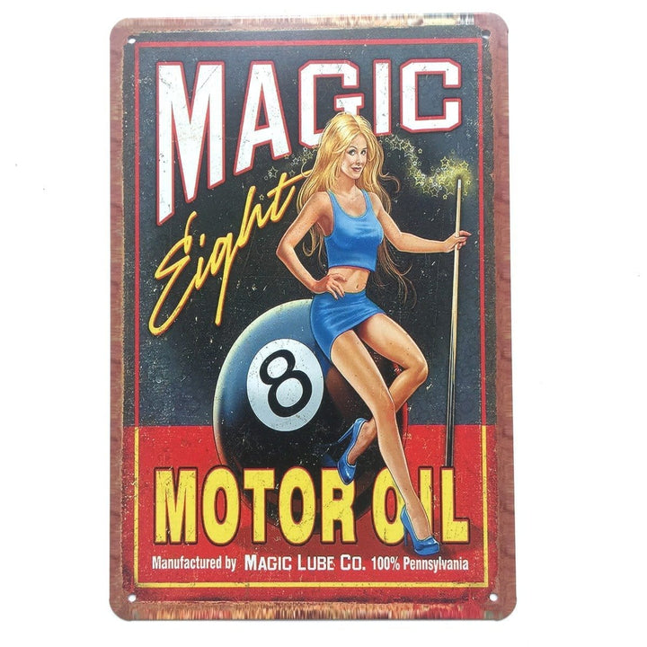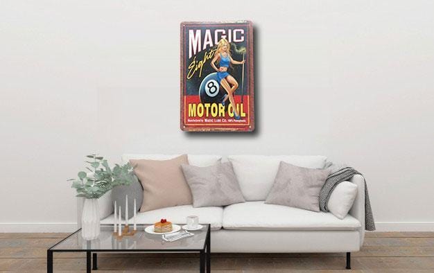 Magic Motor Oil Metal Poster - Wall Metal Tin Poster will adorn the look and feel of your wall. The wall poster has dimensions of 20 x 30 cm and can be stuck in any corner of your room and it will look just as great.